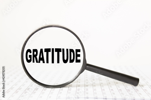 words GRATITUDE in a magnifying glass on a white background. business concept