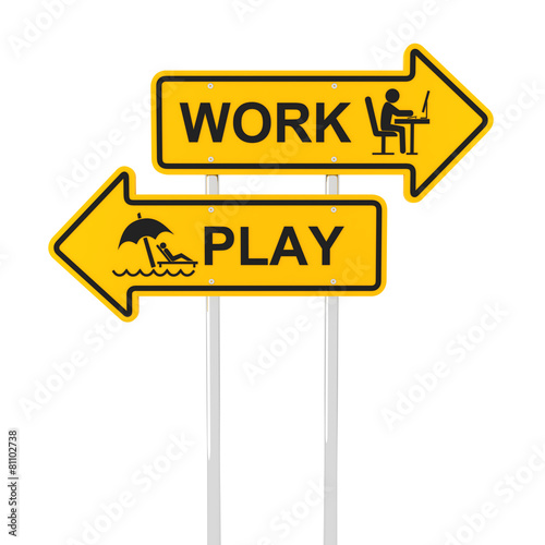 work, play, balance, life, choice, relax, holiday, signs, three-dimensional, white, background, concept, idea, workload, tied-up, leisure, refreshment, overloaded, overtime, dilemma, word, decision, career, lifestyle, business, direction, front, horizontal, illustration, isolated, job, office, opportunity, pole, road, success, symbol, text, view, yellow, well-being
