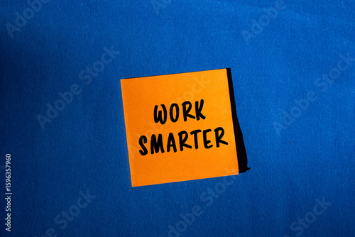 Work Smarter message written on orange paper sticker on blue background. Conceptual Work Smarter symbol. Copy space.