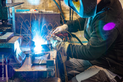 blue, bright, construction, craftsman, electricity, engineering, equipment, factory, glow, heat, heavy, hold, hot, industrial, industry, iron, maintenance, manufacturing, mechanical, metal, metalwork, metalworking, person, precision, process, processing, product, production, professional, repair, skill, spark, tech, technology, tool, weld, welder, welding, work, men at work, working, workshop, yellow