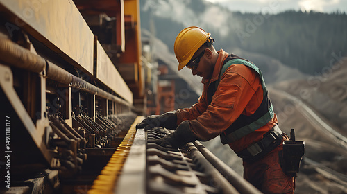 Worker Inspecting Industrial Machinery in a Mining Environment