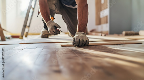 Worker Installing Wooden Flooring