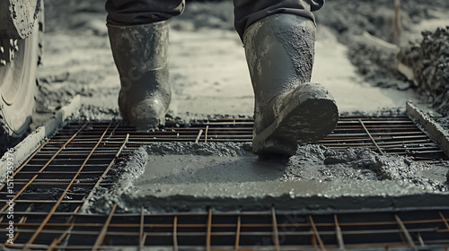 men at work, concrete, construction, boot, mud, site, industry, building, process, footwear, grid, material, work, environment, manual labor, ground, structure, development