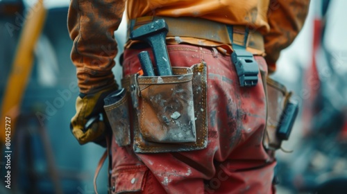 Worker Wearing Tool Belt at Construction Site