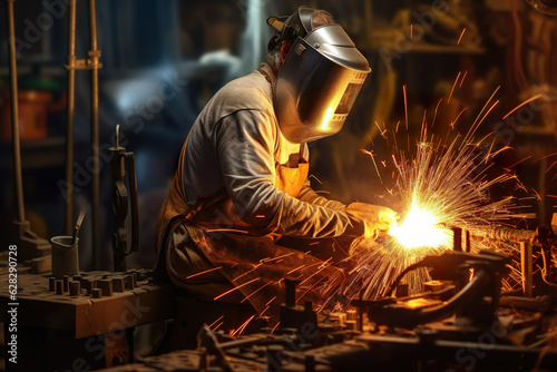 welding, metal, fabrication, welder, steel, industry, factory, equipment, manufacturing, safety, men at work, iron, weld, work, industrial, construction, mask, protection, manufacture, occupation, repair, working, job, helmet, labor, pipe, tool, fire, arc, ia, generative