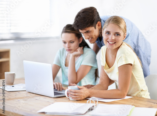 Working together to meet your design needs. Young editors working together on a project.