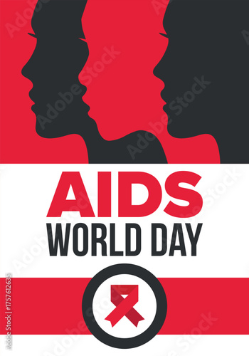 World Aids Day. Red ribbon symbol. Awareness and prevention hiv. Medical healthcare concept. Human support and protection. Celebrated annual in December 1. Poster, banner and background. Vector