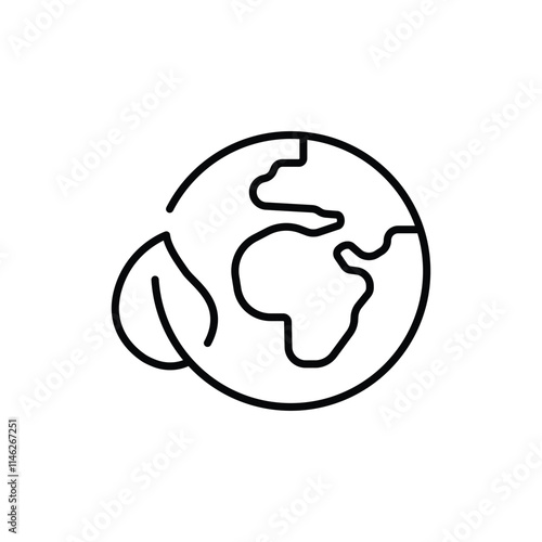 World ecology icon. Simple outline style. Nature global protect, logo eco environment, globe with leafs, green earth planet concept. Thin line symbol. Vector illustration isolated.