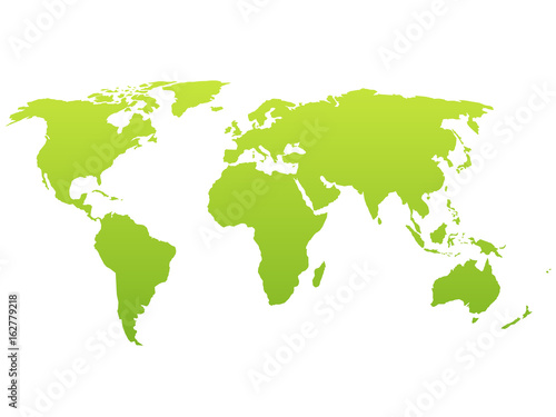 World map silhouette. Vector green gradient isolated on white background.