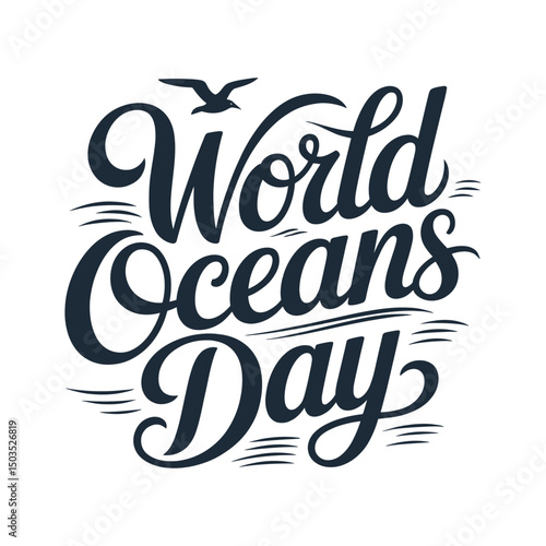 World Oceans Day A minimalist typography, calligraphy design silhouette vector illustration