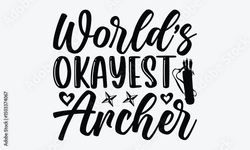 World’s Okayest Archer - Archery T-Shirt Design, Hand Drawn Lettering Phrase, Handmade Calligraphy Vector Illustration, For Cutting Machine, Silhouette Cameo, Cricut.