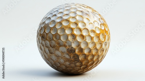 golf, ball, sport, domed, round, dimpled, worn, brown, light, gold, texture, vintage, aged, rustic, isolated, object, studio, white, background, three-dimensional, render, design, illustration, sporty, equipment, game, sphere, closeup, detail, high, quality, image, realistic, photo, modern, art, graphic