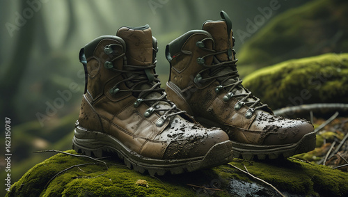 forest floor, nature, travel, trekking, hiking, adventure, exploration, solitude, forest, camping, shoe, rugged, textured, closeup, still life, timberland, earthy, no people, lace, backpacking, old shoes, environment, rural scene, footwear