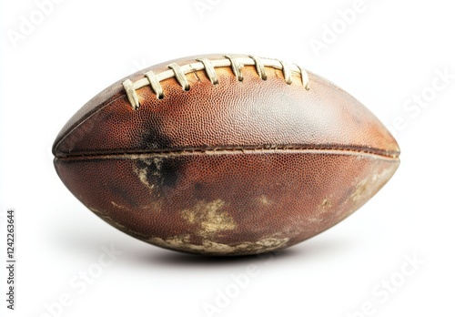football, american, vintage, old, leather, worn, used, game, sport, gridiron, tackle, pass, throw, play, athlete, competition, championship, victory, defeat, team, player, brown, dirt, grunge, textured, lace, stitching, equipment, classic, retro, antique, collectable, nostalgia, memory, history, fall, autumn, season, action, energy, power, speed, strength, ball, oval, object, isolated, white, background