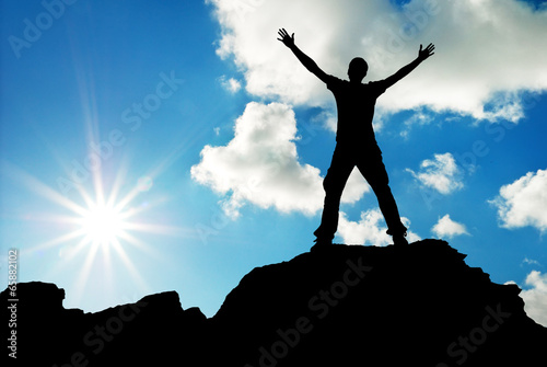 top, mountain, man, climbing, power, climb, peak, travel, freedom, sun, sunlight, hiking, adventure, stone, activity, hiker, achievement, rock, happiness, success, male, active, people, cloud, climber, energy, lifestyle, healthy, up, strength, high, free, blue, person, joy, sky, cliff, silhouette, nature, hand, sport, happy, god, faith, religion, concept, worship, spirit, salvation