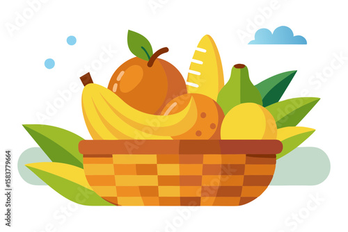 Woven Fruit Basket with Mango Banana and Orange Picnic Illustration