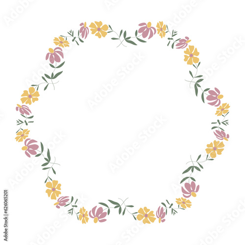 Wreath of flowers romantic ornament of pink and yellow flowers vector illustration copy space