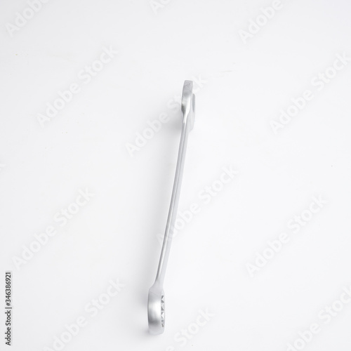 Wrench, tool, spanner, isolated, metal, steel, chrome, equipment, white, work