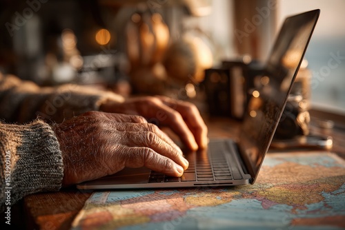 hand, laptop, map, keyboard, vintage, camera, typing, travel, planning, senior, online, journey, global, service, technology, adventure, exploration, destination, trip, vacation, booking, cyberspace, website, research, elderly, earth, navigation, geography, cartography, tour tourism, traveler, retired, leisure, lifestyle, freedom, life events, discovery, wanderlust, inspiration, preparation, searching, connection, communication