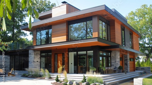 Write about sustainable materials, energy-efficient systems, and how modern design principles enhance functionality and environmental responsibility in family homes.