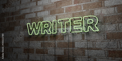 WRITER - Glowing Neon Sign on stonework wall - 3D rendered royalty free stock illustration. Can be used for online banner ads and direct mailers..