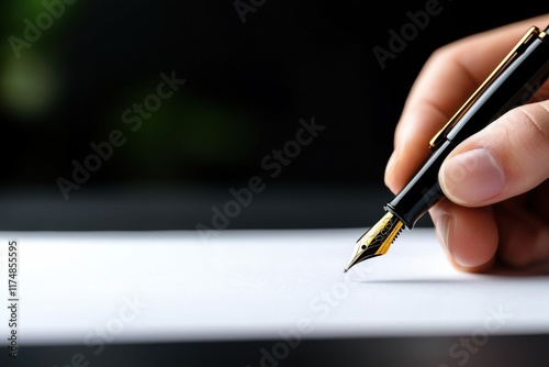 Writing inspiration close-up of hand holding a fountain pen indoor workspace creative process minimalist atmosphere