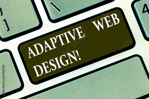 Writing note showing Adaptive Web Design. Business photo showcasing multiple versions of a webpage to fit the user s is device Keyboard key Intention to create computer message pressing keypad idea