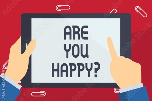 Writing note showing Are You Happy. Business photo showcasing Asking if you are fulfilled in your life enjoying moments