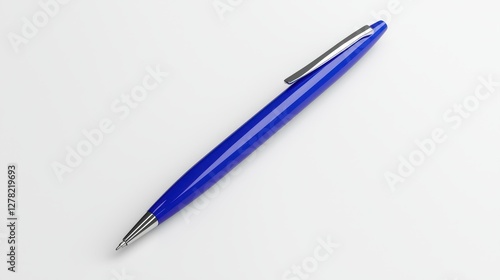 Writing with a blue pen on white surface close-up minimalist style creative workspace focused concept