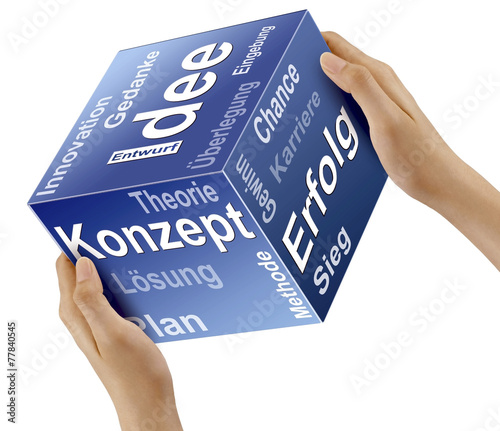 Würfel mit Businessplan. Idee, Konzept, Erfolg. Freigestellt