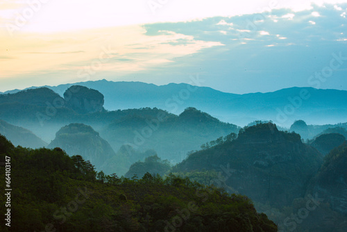 Wuyishan, Wuyishan City, Fujian Province - Aerial view of cityscape and mountains