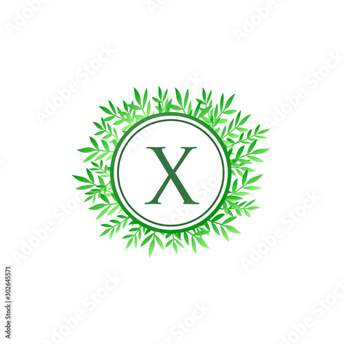 X Leaves Letter Logo. Green Leaf X Logo Icon.