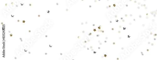 XMAS Banner with golden decoration. Festive border with falling glitter dust and stars.