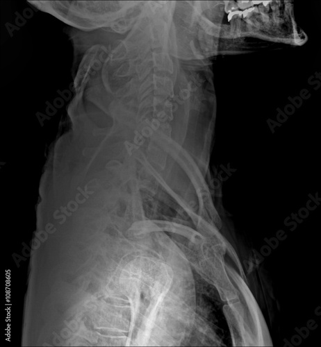 Xray of neck and cervical spine, side view.