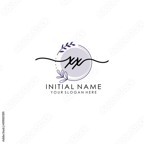 XX Luxury initial handwriting logo with flower template, logo for beauty, fashion, wedding, photography