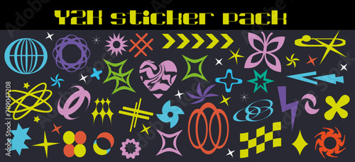 Y2K icon set. Retro futuristic elements for design. Collection of abstract modern graphic geometric symbols and objects in y2k style. Anti-design, Digital Collage, Retro Futurist. Vector illustration