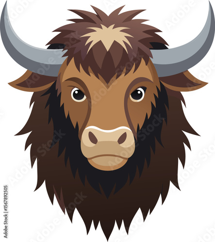 yak, animal, horn, vector, cartoon, mammal, face, wild, highland, cattle, strong, furry, brown, head, design, illustration, portrait, farm animal, wilderness, ox, bold, icon, symmetric, flat, mountain