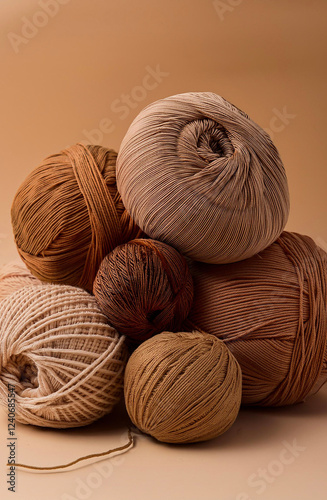yarn for needlework on a paper brown background.