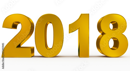 year 2018 golden 3d numbers isolated on white