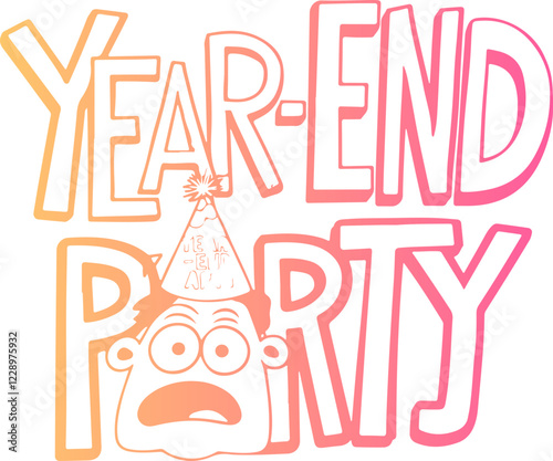 year, end, party, sticker, celebration, fun, festive, holiday, design, graphic, illustration, colourful, text, typography, cartoon, character, surprised, face, lettering, message, font, logotype, modern, artistic, bold, minimal, decorative, stylish, elegant, vintage, retro, calligraphy, hand-made