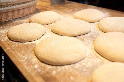 yeast bread dough on bakery kitchen table