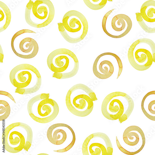 Yellow and orange Watercolor spirals background. Summer seamless pattern for wallpaper, packaging, wrapping, scrapbooking