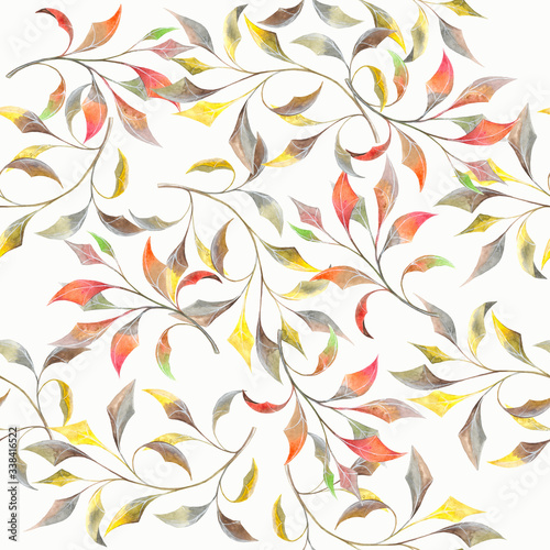 leaf, watercolor, yellow, red, pattern, floral, seamless, wallpaper, abstract, design, illustration, leaf, decoration, ornament, nature, texture, art, decorative, vintage, retro, textile, plant, autumn, white, drawing, watercolor, colours, colours, tree branch, branch, botanical, decor, seamless pattern, background, print