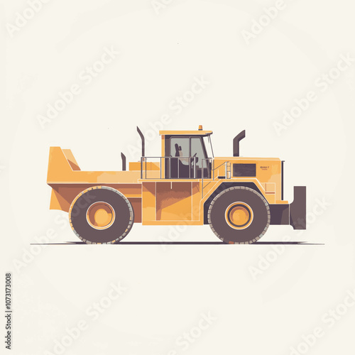 bulldozer, side, view, illustration, vector, art, design, custom, hand-drawn, vignetting, detailed, aesthetic, industrial, heavy duty, construction, vehicle, machinery, transport, load, cargo, wheel, tire, engine, hydraulic, blade, track, operator, cabin, road, worksite, equipment, graphic, poster, print, artwork, collectable, minimalist, streamlined, iconic, heritage