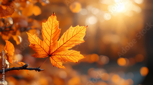 Yellow autumn leaf close-up. With a blurred bokeh background, a bright orange tree changes.