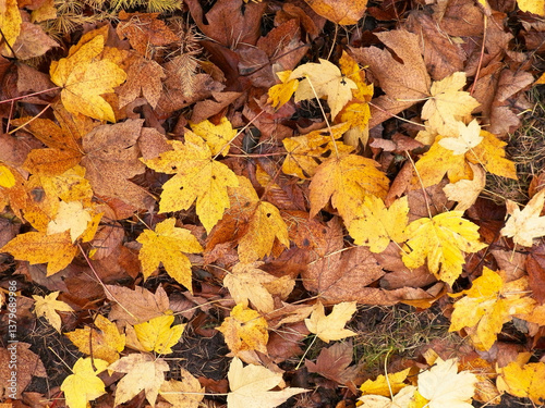 Yellow autumnal leaves as nature background.