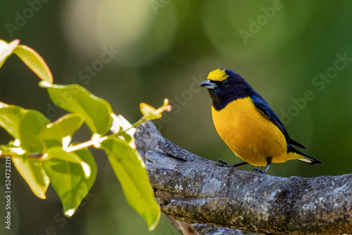 Yellow Bird. A Purple-throated Euphonia also known as Fim-fim perched on the branch. Species Euphonia chlorotica. Birdwatching. bird lover.