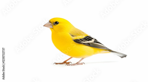 Yellow Canary Bird Posing Against White Background; Ideal for Pet, Wildlife, or Nature Publications