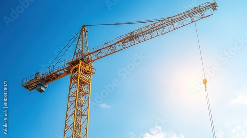 crane, construction, industry, machine, building, machinery, work, engineering, industrial, steel, equipment, heavy, hoist, high, power, lifting, metal, structure, tower, boom, hook, cable, wire, sky, blue, sunny, sunny day, clear, cloud, white, day, sunlight, overhead