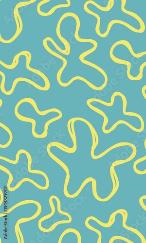 Yellow curved contours of spots on a blue background
